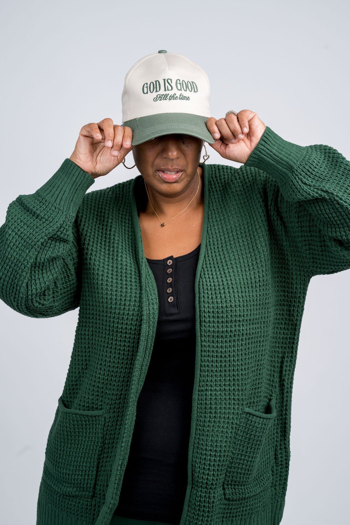The “God Is Good All the Time” Two-Tone Canvas Cotton Cap is the perfect accessory to top off any look. Designed with a trendy two-tone style and an inspiring message, this cap is lightweight, breathable, and ready to wear year-round.