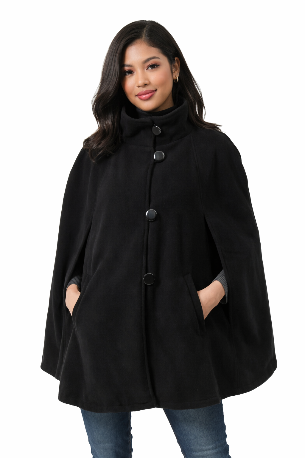 This is the cozy layering piece your fall and early winter wardrobe needs. The Fleece High-Collar Button Poncho delivers warmth, style, and ease in one effortlessly chic silhouette. Designed with a relaxed, generous fit, this sleeveless poncho features open sides to comfortably accommodate a variety of body shapes while making layering simple and stress-free.