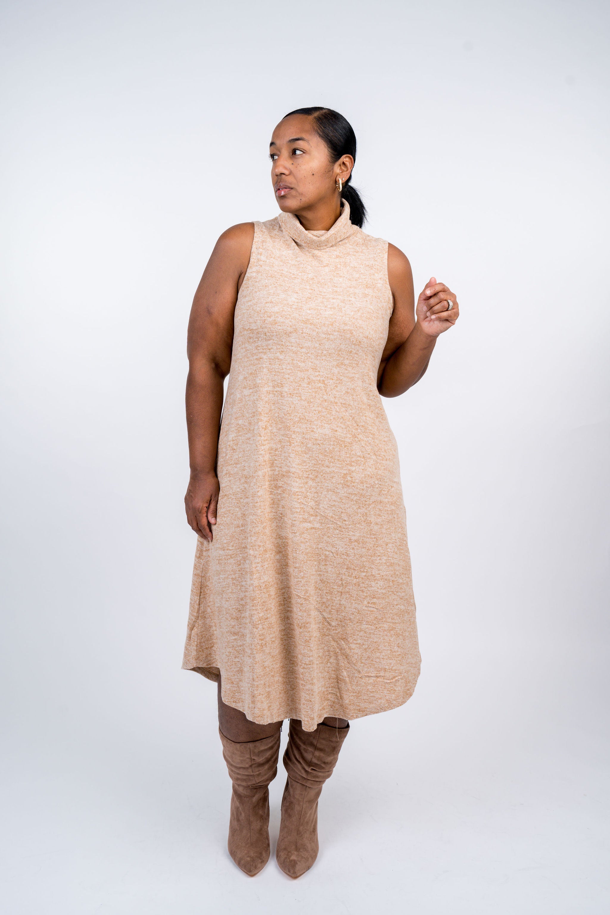 The The Cozy Knit Set brings luxury and comfort together in the most effortless way. Featuring a sleeveless brushed cashmere cowl-neck dress paired with a matching open-front cardigan, this duo gives you that refined, elevated look without sacrificing comfort.