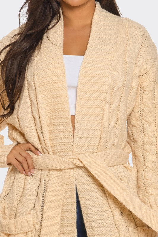 The Love Cable Knit Cardigan is your must-have duster for chilly days and stylish nights. Designed in a full-length silhouette with classic cable knit detailing, this belted cardigan wraps you in warmth while keeping your look effortlessly chic.