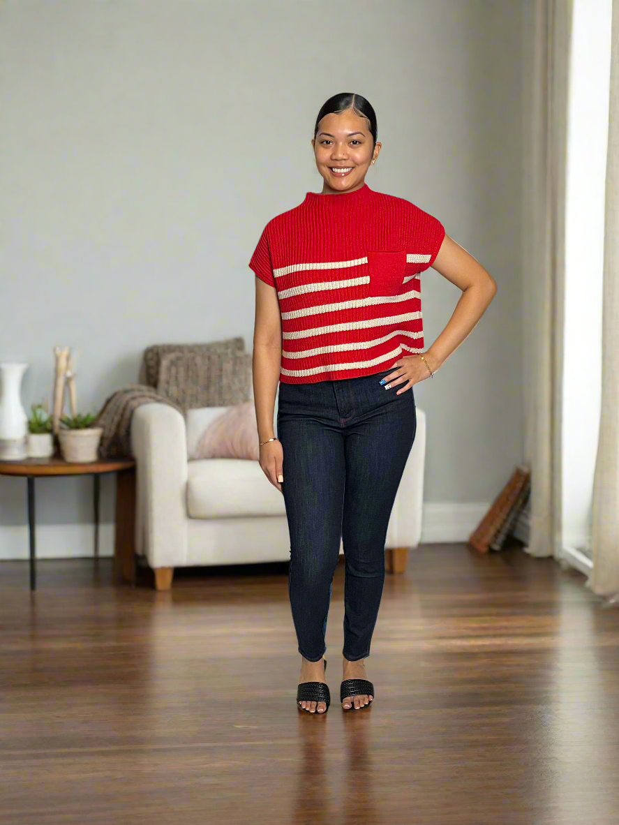 Spread the love this season with the Judy Blue High Rise Dark Wash Heart Pocket Skinny Jeans. Designed with heart-shaped back pockets, red stitching, and a rich dark wash, these jeans offer a perfect blend of style and comfort. The super stretchy construction ensures a flattering fit and all-day comfort. Don’t miss out—grab yours today and show off your love for fashion this season.