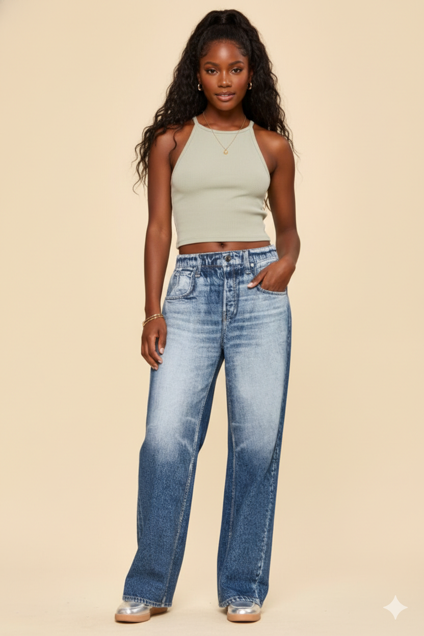 This is comfort disguised as denim — Empire style. Jeannine wears a medium.
