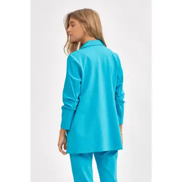 Introducing the Magic ¾ Blazer, crafted from a soft and stretchy special double-knit fabric that combines comfort and style. This blazer offers a structured and slimming look while keeping you comfortable all day long. The 4-way stretch fabric ensures flexibility and ease of movement, while the ¾ ruched sleeves add a touch of elegance and flair. Made from a blend of 65% Rayon, 30% Nylon, and 5% Spandex, this blazer is the perfect addition to your wardrobe for both professional and casual settings. The model, 5'8", is wearing a size Small, and Jeannine wears an XL. Elevate your look with this chic, versatile blazer! Matching Pants under Bottoms Collection.