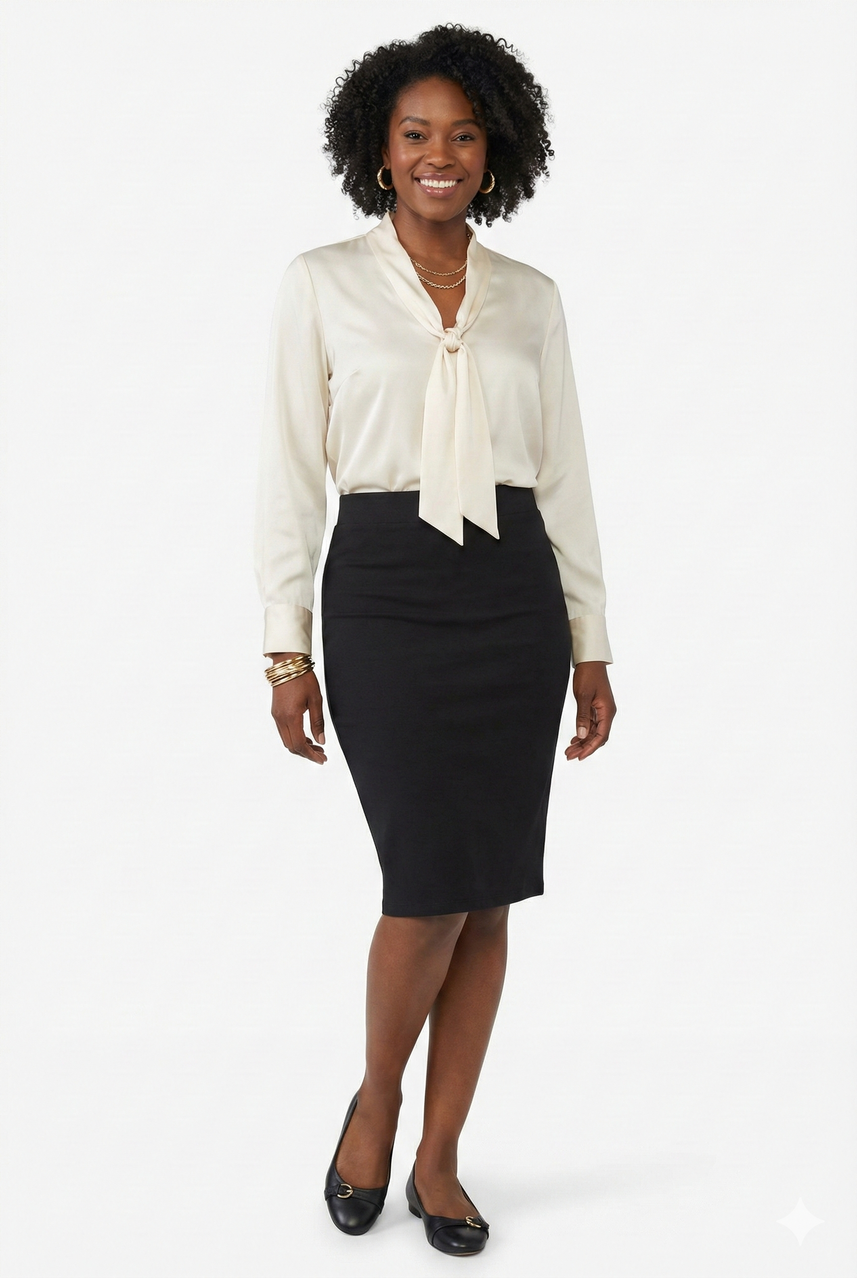 Whether you’re pairing it with a blouse for the office or a graphic tee and sneakers for a casual moment, this skirt keeps things simple, flattering, and stress-free.
