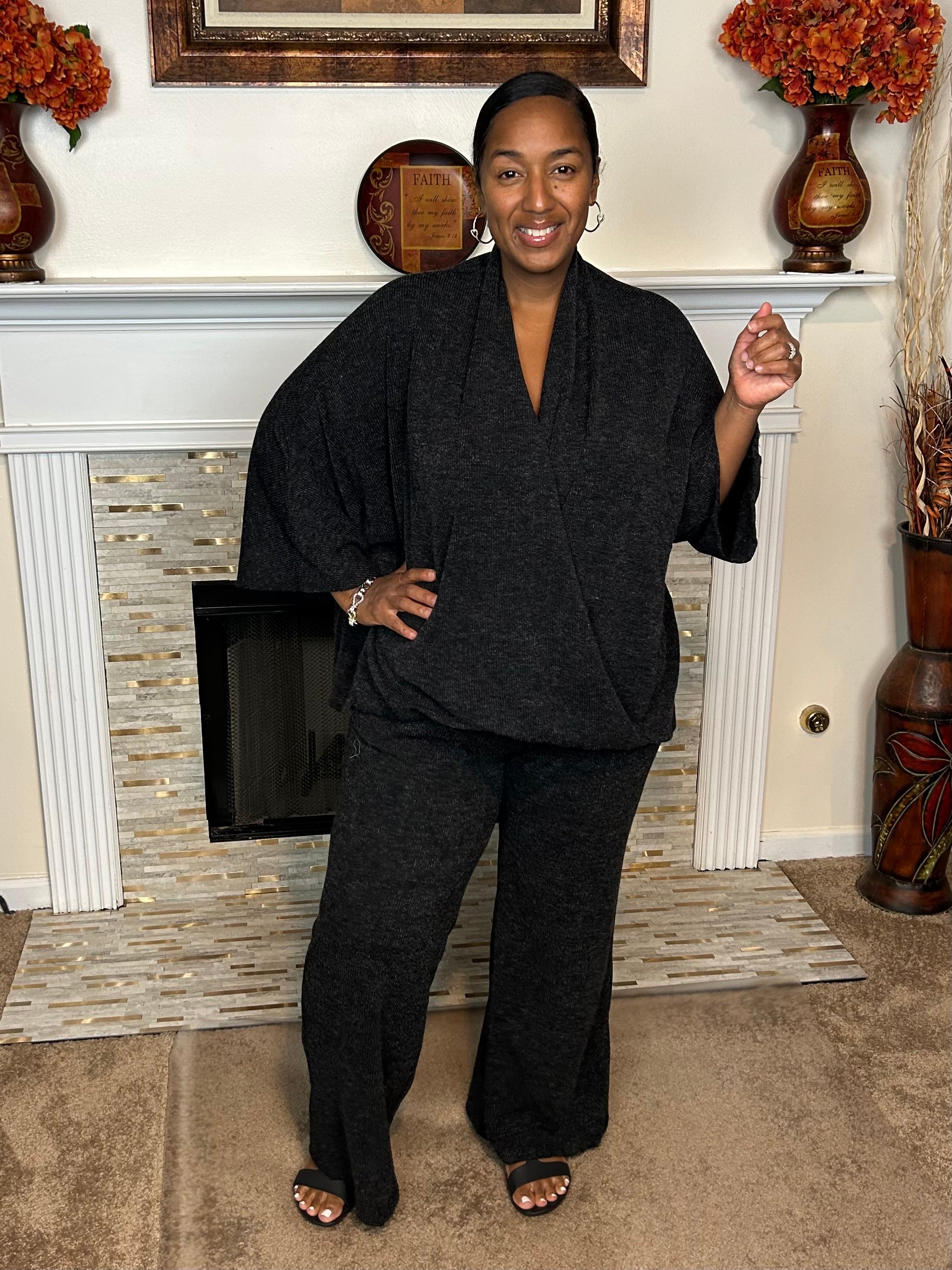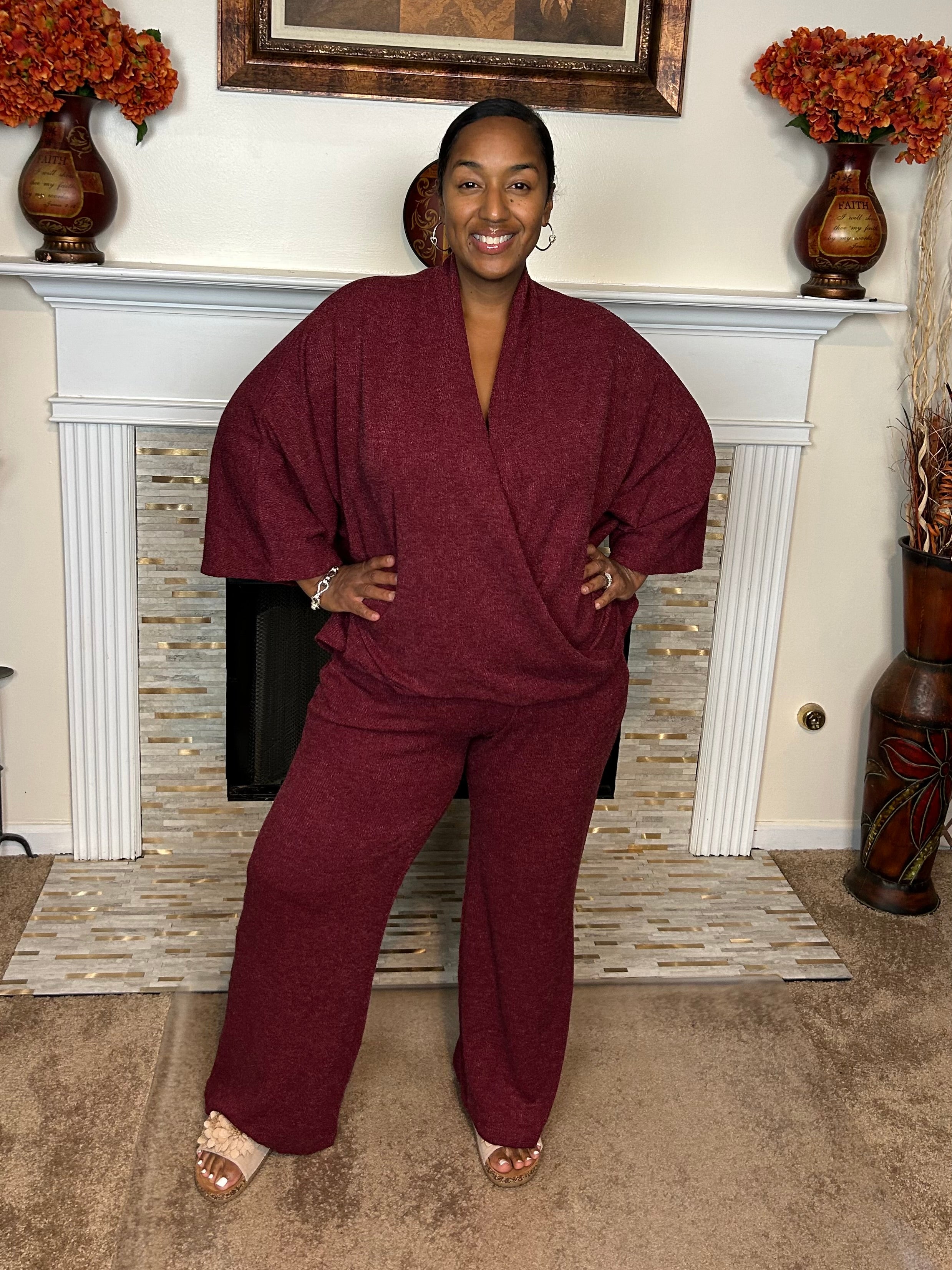 Effortless style meets everyday comfort in this Ribbed Wrap Top & Pant Set—your new go-to for elevated lounging and stylish travel days. The soft ribbed texture adds subtle dimension, while the wrap-style top flatters every figure. Paired with relaxed-fit pants featuring an elastic drawstring waist, this set moves with you from errands to airport gates and everything in between.
