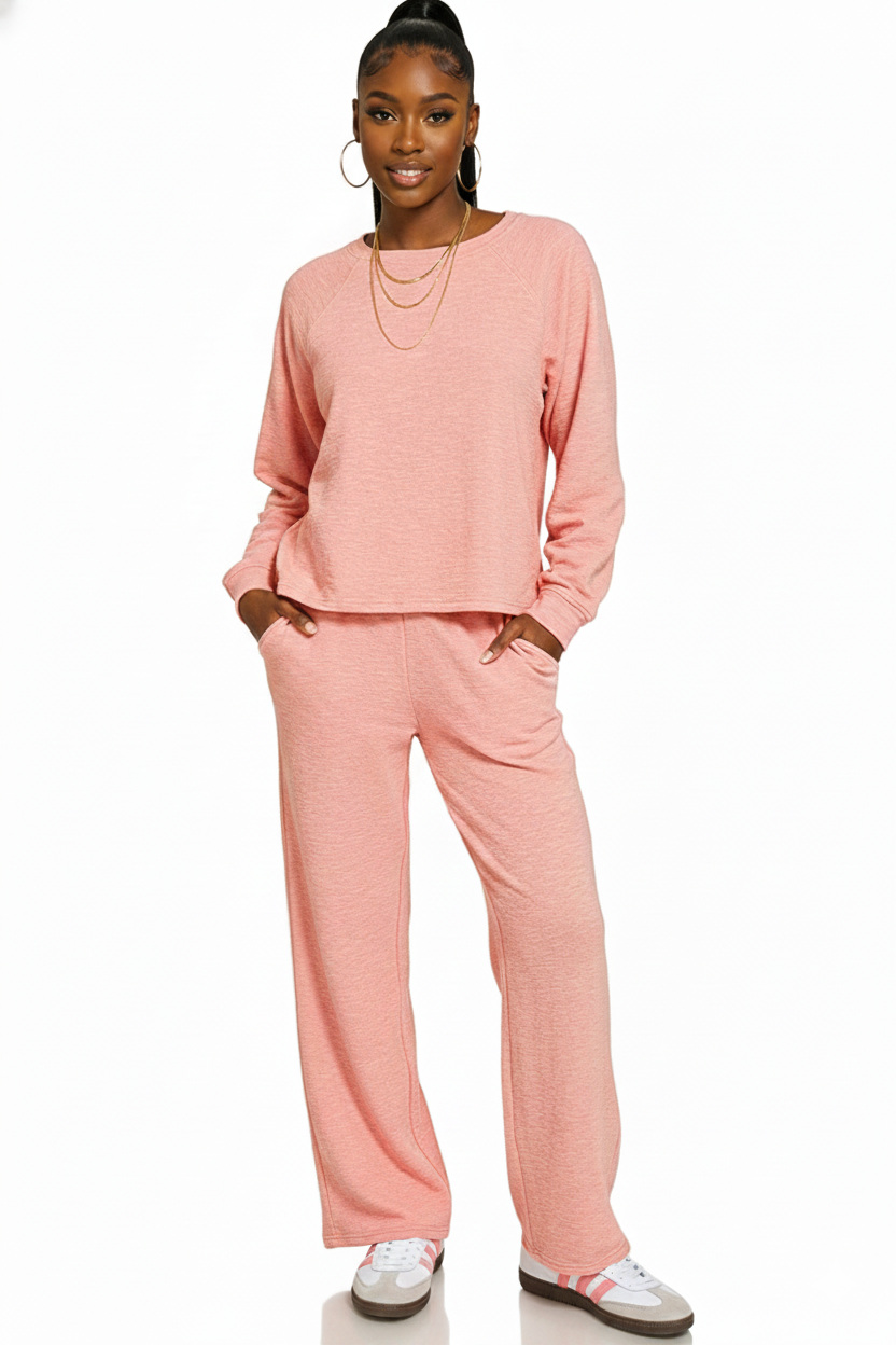 The long-sleeve slub top has a relaxed, effortless fit, while the matching pull-on pants feature an elastic waistband and easy movement that feels good all day long. The textured slub fabric gives this set a naturally elevated look — casual, but never sloppy.